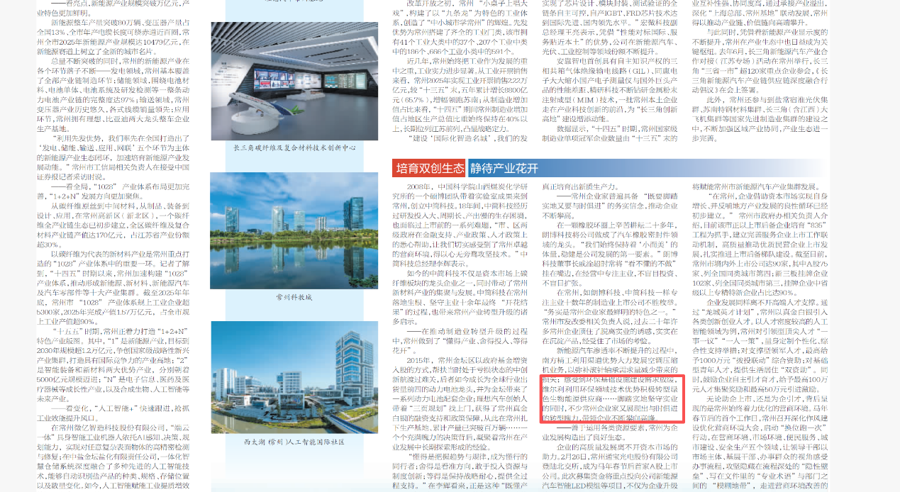 中国证券报3月16日在深度透视全版发布了常州产业高质量发展调研,文中充分肯定了常州从“工业明星城”向“国际化智造名城”迈进的常州模式和常州力量。PA视讯平台集团作为常州向国际化智造名城迈进的产业转型中坚力量,利用沉淀多年的环保领域技术优势和深厚积淀,向生物能源领域实现战略转型,实现了企业与政府产业高质量发展的共同成就。