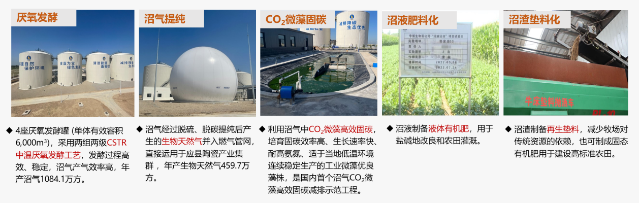 山西应县畜禽粪污处理及资源化利用项目:采用“能源化+肥料化”路径,年处理20万吨牛粪污,产出生物天然气、有机肥和牛床垫料,构建了“养殖-能源-肥料-回用”的县域级循环。