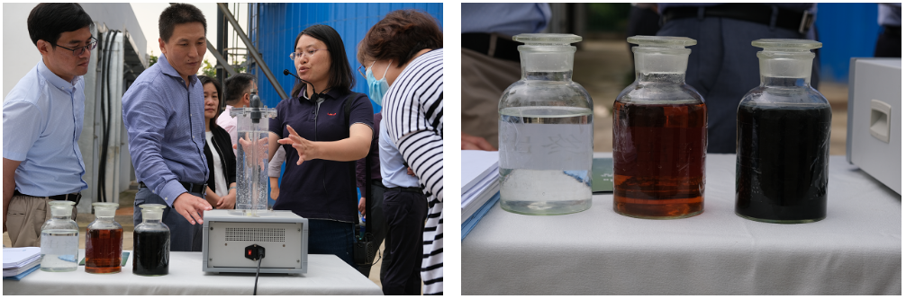 随后水办一行领导对“填埋场渗滤液低耗稳定资源化利用技术提升研究与工程示范”进行检查,子课题二技术骨干韩颖就示范工程情况进行汇报,并展示喷射环流反应器模型、渗滤液进水、MBR出水、RO出水,得到一众领导的认可。