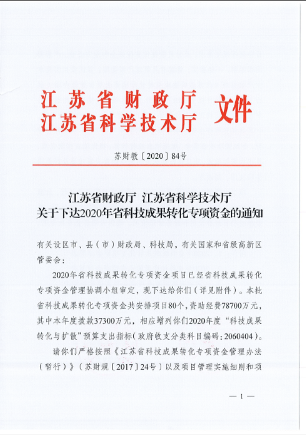 2020年江苏省科技成果转化专项资金项目立项80项,其中常州6家企业获此殊荣,PA视讯平台集团为其中之一。
