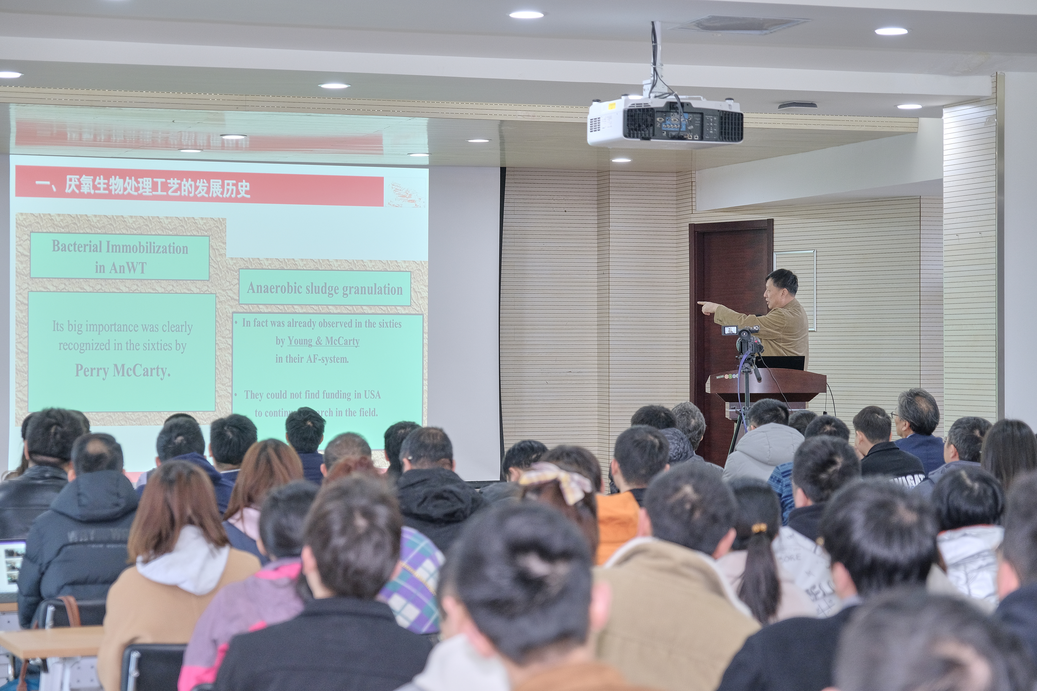 王凯军教授为PA视讯平台集团作了主题为《厌氧技术的发展》的专题讲座。从国家能源战略及前景、厌氧技术发展现状以及存在的问题与未来技术的挑战三方面对有机废物厌氧处理技术发展做出讲解。重点分享了厌氧生物处理工艺的发展历史和UASB技术在废水处理领域的应用,并对中国UASB设计与产业化做出了分析与畅想。